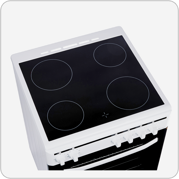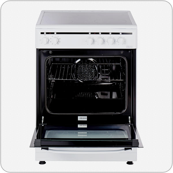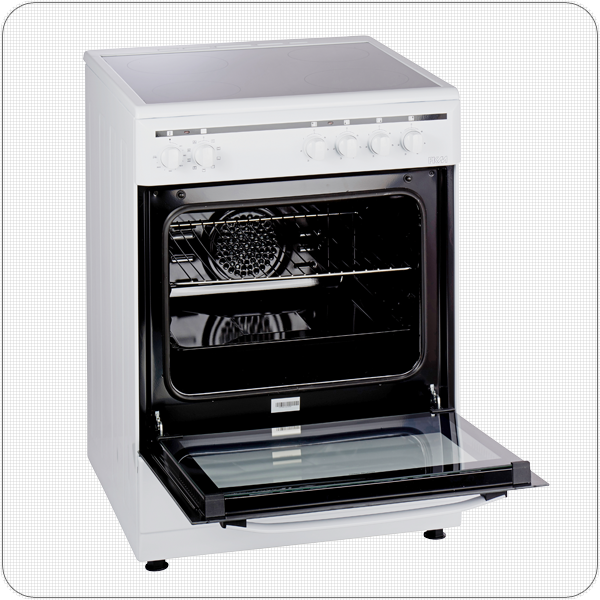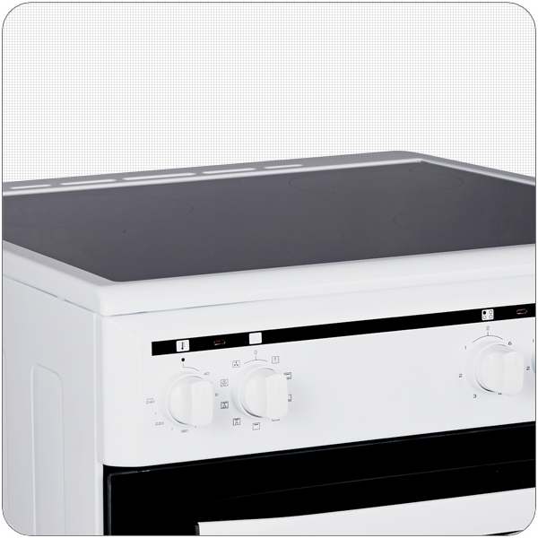 weiss, Energieeffizienzklasse A, Glaskeramik Kochfeld, Anzahl Kochfelder: 4, 56 Liter Garraumvolumen, Restwärmeanzeige, Vollglasinnentüre, 2 Glasschichten, Gehäusekühlung, Tropfschale, Grillrost
