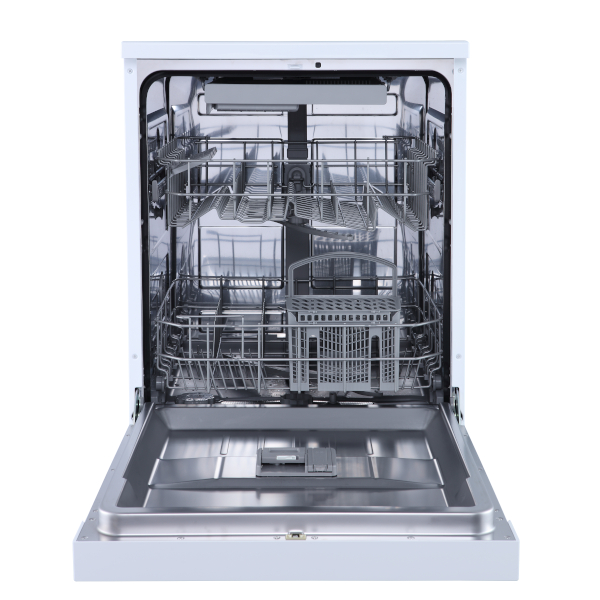 Weiß, Energieeffizienzklasse D, 14 Gedecke Fassungsvermögen, Startzeitvorwahl, 3 Sprühebenen, Besteckkorb, höhenverstellbare Füße, Wasserüberlaufschutz